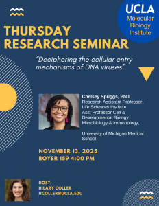 MBI Thursday Research Seminar | Chelsea Spriggs, PhD | Hosted by Hilary Coller, PhD